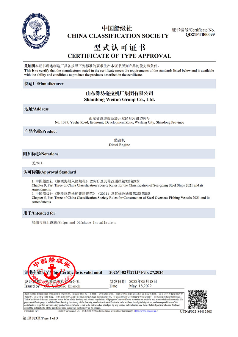 中國船級社形式認(rèn)可證書(2022年5月-2026年2月)